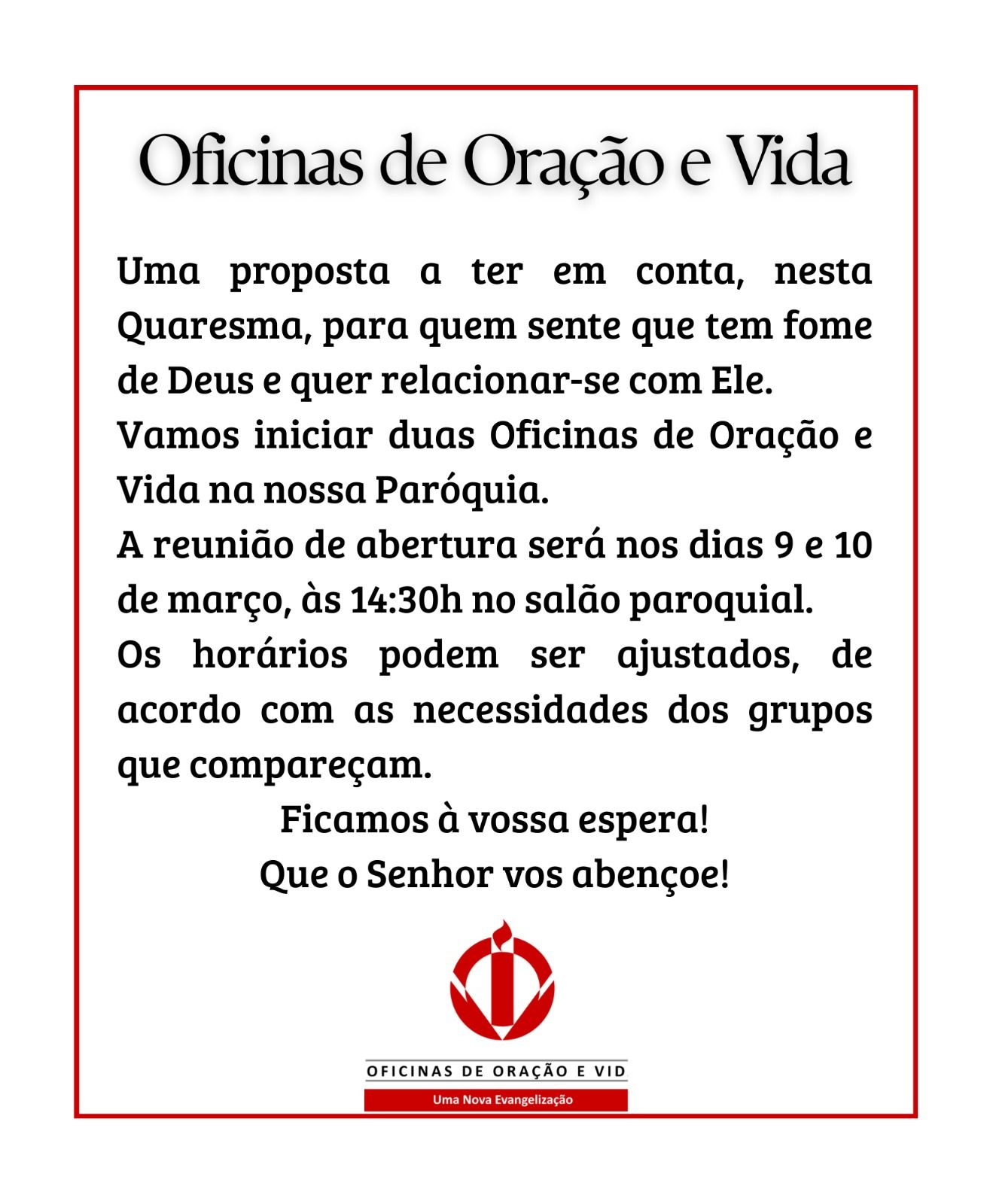 | Oficinas de Oração e Vida | Feb 28 2026, 2:13 PM | |